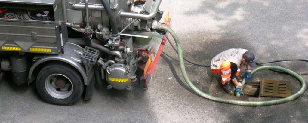 - Curage haute pression : avec un camion hydrocureur projetant de l’eau sous forte pression